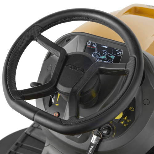 Stiga Tornado 9121 W er udstyret med en robust motor, der sikrer en effektiv og jævn klipning, selv på ujævnt terræn. Med en klippebredde på 91 cm kan du hurtigt og nemt klare store arealer, hvilket sparer dig tid og energi.